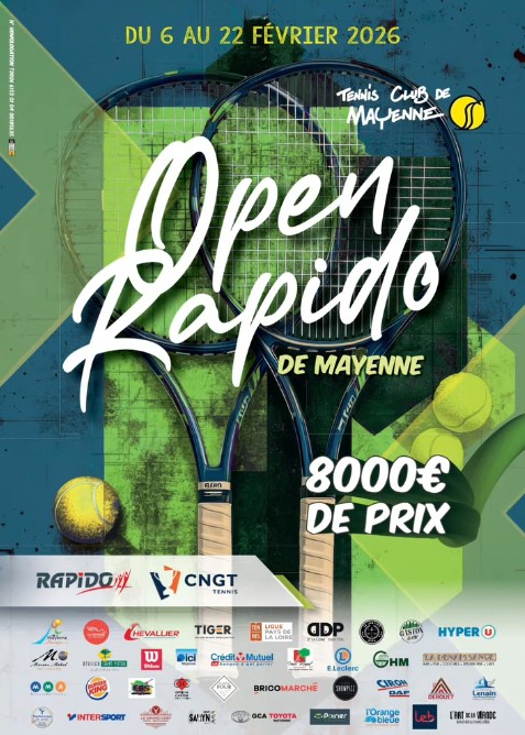 Le Tennis‑Club de Mayenne organise une nouvelle édition de l’Open Rapido, l’un des tournois les plus importants du département et une référence des Circuits Nationaux des Grands Tournois. L’édition 2026 se déroulera du 6 au 22 février 2026, réunissant joueuses et joueurs de tous niveaux, des non‑classés jusqu’aux numérotés.